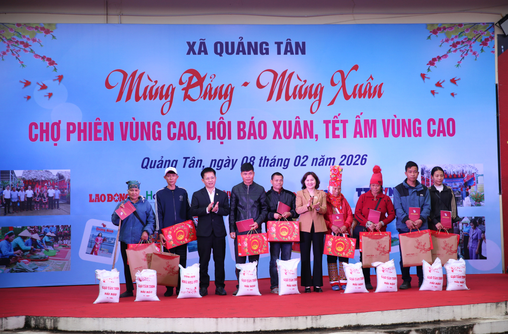 Ngày 8/2, tại xã Quảng Tân, trong không khí phấn khởi, ấm áp chuẩn bị đón xuân mới, xã Quảng Tân phối hợp với Hội nhà báo tỉnh Quảng Ninh tổ chức chuỗi hoạt động Phiên chợ vùng cao – Hội báo xuân và chương trình “Tết ấm vùng cao” Xuân Bính Ngọ năm 2026. ![]() Các chuỗi hoạt động được tổ chức trang trọng, ý nghĩa với nhiều nội dung như: triển lãm sách báo, trang trí gian hàng mang sắc xuân, gắn liền với không khí, thành tựu và sự phát triển của tỉnh; các trò chơi dân gian; gian hàng ẩm thực… ![]() Trong khuôn khổ các hoạt động, chương trình “Tết ấm vùng cao” đã nhận sự quan tâm của các cấp, các ngành và toàn xã hội đối với các hộ gia đình có hoàn cảnh khó khăn, các đối tượng yếu thế và các em học sinh trên địa bàn xã Quảng Tân. Thông qua chương trình, 650 suất quà trị giá trên 500 triệu đồng đã được gửi tới các hộ có hoàn cảnh khó khăn, góp phần giúp bà con đón Tết vui tươi, đầm ấm và đủ đầy hơn. Đặc biệt, trong khuôn khổ chương trình cũng đã diễn ra hoạt động đấu giá các bức tranh do chính các cô giáo và các em học sinh của các trường trên địa bàn ghép từ những vật liệu từ thiên nhiên trên địa bàn xã. Hoạt động đấu giá đã nhận được sự ủng hộ nhiệt tình từ các mạnh thường quân với số tiền 22,5 triệu đồng, để gây quỹ ủng hộ các em học sinh có hoàn cảnh khó khăn, giúp các em có thêm điều kiện học tập, vươn lên trong cuộc sống. ![]() Chuỗi hoạt động Phiên chợ vùng cao – Hội báo xuân và chương trình “Tết ấm vùng cao” Xuân Bính Ngọ năm 2026 sẽ được diễn ra từ ngày 8/2 – 16/2/2026. Đây là chương trình có ý nghĩa thiết thực, giàu tính nhân văn, góp phần bảo tồn, phát huy bản sắc văn hóa truyền thống của đồng bào 13 dân tộc trên địa bàn xã; qua đó thể hiện tinh thần đoàn kết, tương thân tương ái, chung tay chăm lo đời sống vật chất, tinh thần cho nhân dân, đặc biệt là các hộ gia đình, các em học sinh có hoàn cảnh khó khăn trên địa bàn, để mọi người, mọi nhà đều được đón Tết, vui Xuân đầm ấm, nghĩa tình.